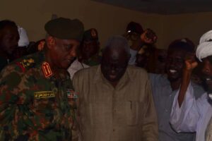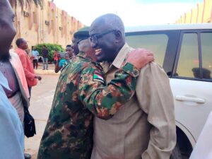 مولانا احمد ادم بخيت امين إقليم العاصمة القومية ونائب رئيس حركة العدل والمساواة السودانية يتفقد مصابي العمليات العسكرية من القوات المسلحة والقوات المشتركة بالسلاح الطبي رفقة الفريق أول ركن ياسر عبدالرحمن العطا عضو مجلس السيادة الانتقالي ومساعد القائد للقوات المسلحة، ورافقهم في الزيارة الفريق عباس اللبيب نائب مدير جهاز المخابرات العامه.