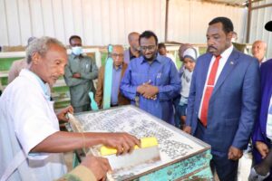 وزار الوزير مجمع صناعات ديوان الزكاة، الذي يضم مشغلا متقدما للملابس يعمل به اكثر من مائة عامل نسبة كبيرة منهم من النساء، وينتج الزي المدرسي والملابس الطبية والعسكرية وانواعا مختلفة من الملبوسات، اضافة الى مصنع للطباشير بطاقة انتاجية تفوق عشرة آلاف طباشيرة في اليوم، يغطي حاجة مدارس ولاية نهر النيل وعدد من الولايات الاخرى، ويقدم منتجاته مجانا للمدارس في المناطق الفقيرة. كما يضم المجمع مصنعا لمنتجات الالبان ينتج الزبادي والجبن ومشتقات الالبان المختلفة، ويوفر فرص عمل حقيقية للمواطنين عبر نظام الانتاج والتشغيل، مع تنظيم دورات تدريبية في الصناعات المختلفة، في نموذج عملي لربط الزكاة بالانتاج وخلق فرص عمل للاسر الضعيفة.